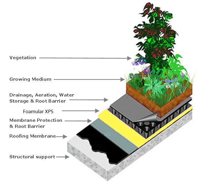Green Roofs have many benefits but for maximum benefit to the building roof area insulation should be an essential component.